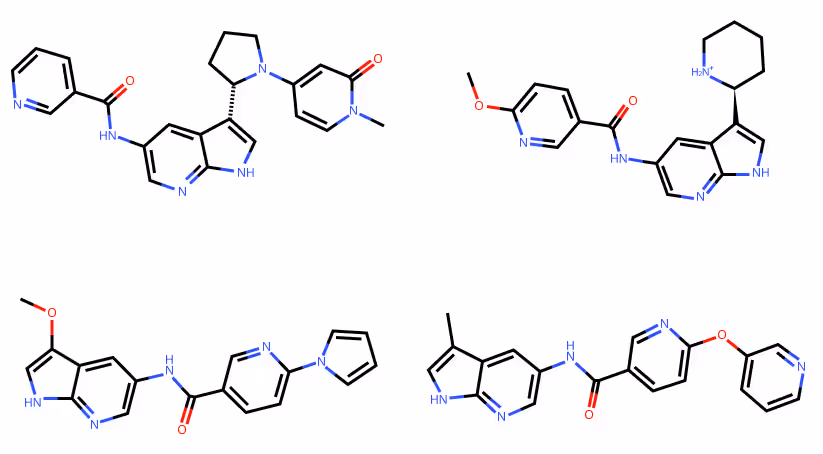The Inventum.AI platform accelerates the drug discovery process by integrating advanced machine learning techniques with best practices in molecular modeling. This case study describes the design and validation of a novel FLT3 inhibitor using the platform’s Scaffold Generation and Periphery Generation modules, enabling rapid identification and optimization of promising candidate molecules.